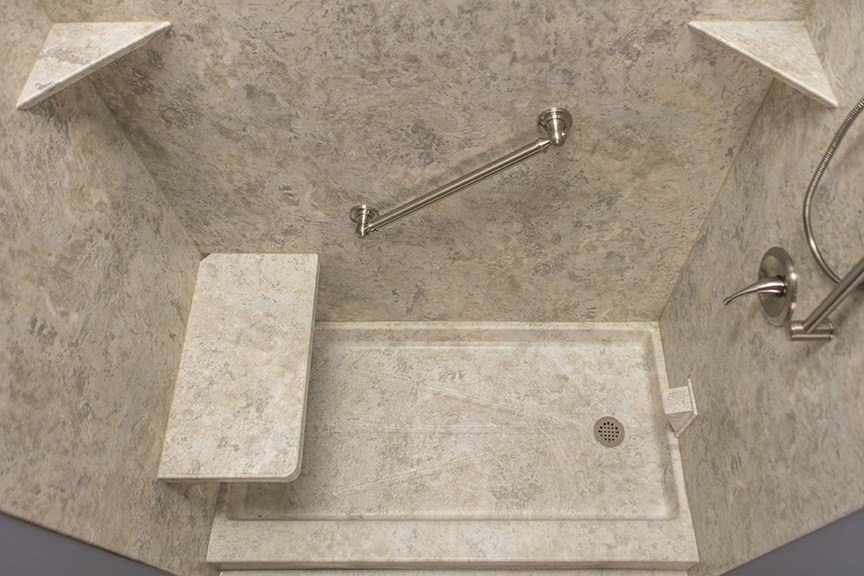 Because we fully demo the space first, we can identify and treat any existing mold before installation. The BCI® acrylic panels are also infused with Microban® antimicrobial protection, which actively resists mold and mildew growth for the life of the product.